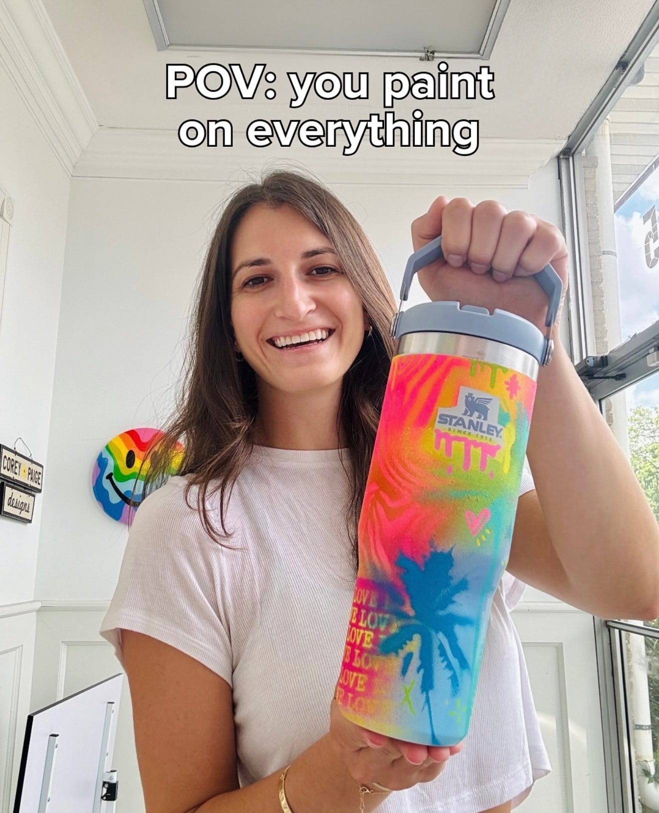 Known for her expressive style, Corey’s unique designs explore themes around love, positivity, and happiness. Corey is passionate about using her art to make the world a brighter place while making a positive impact.