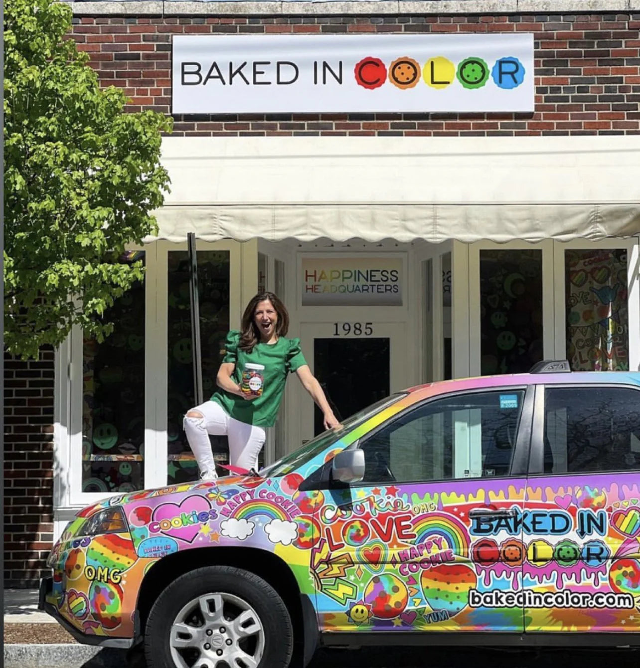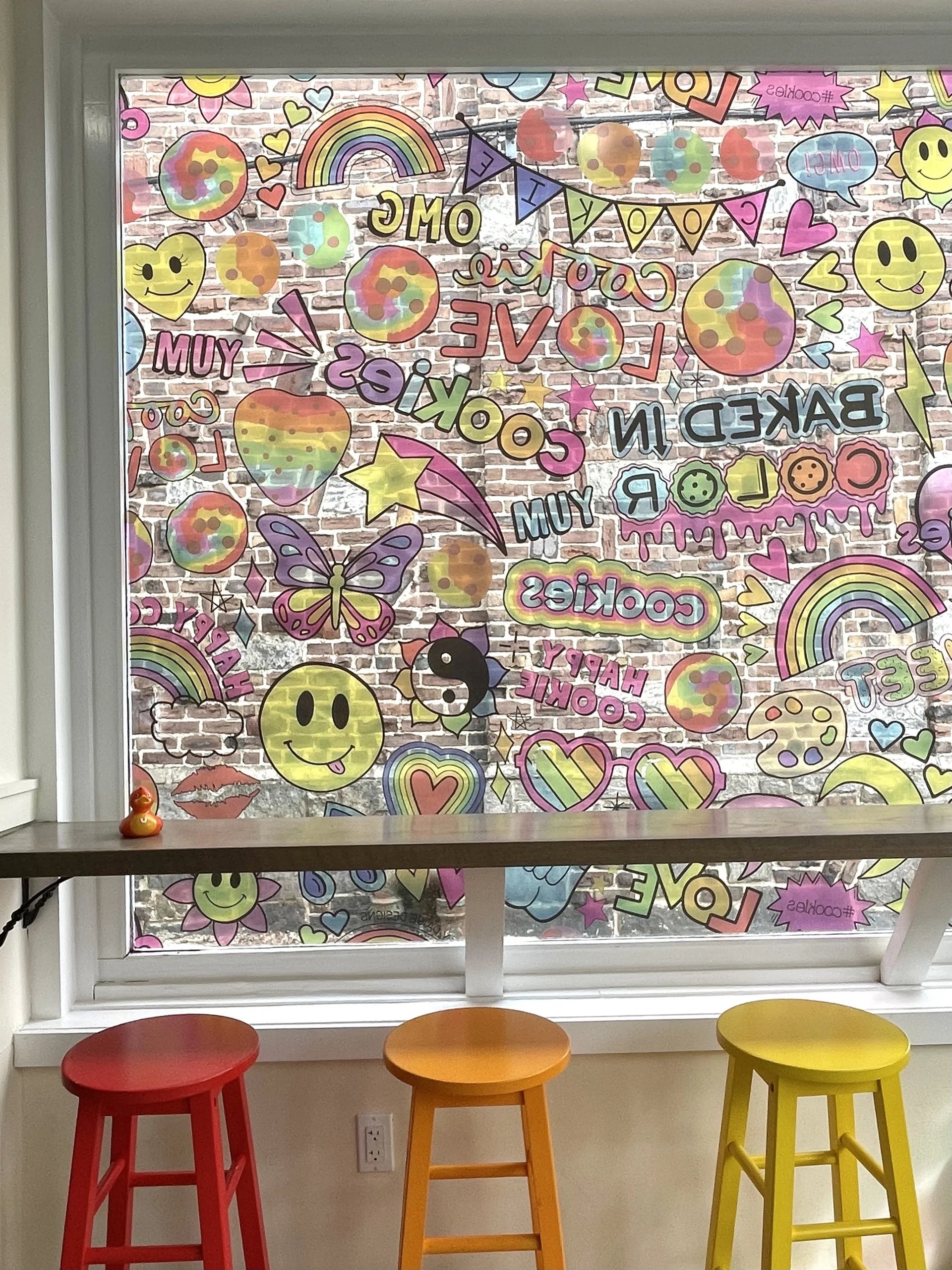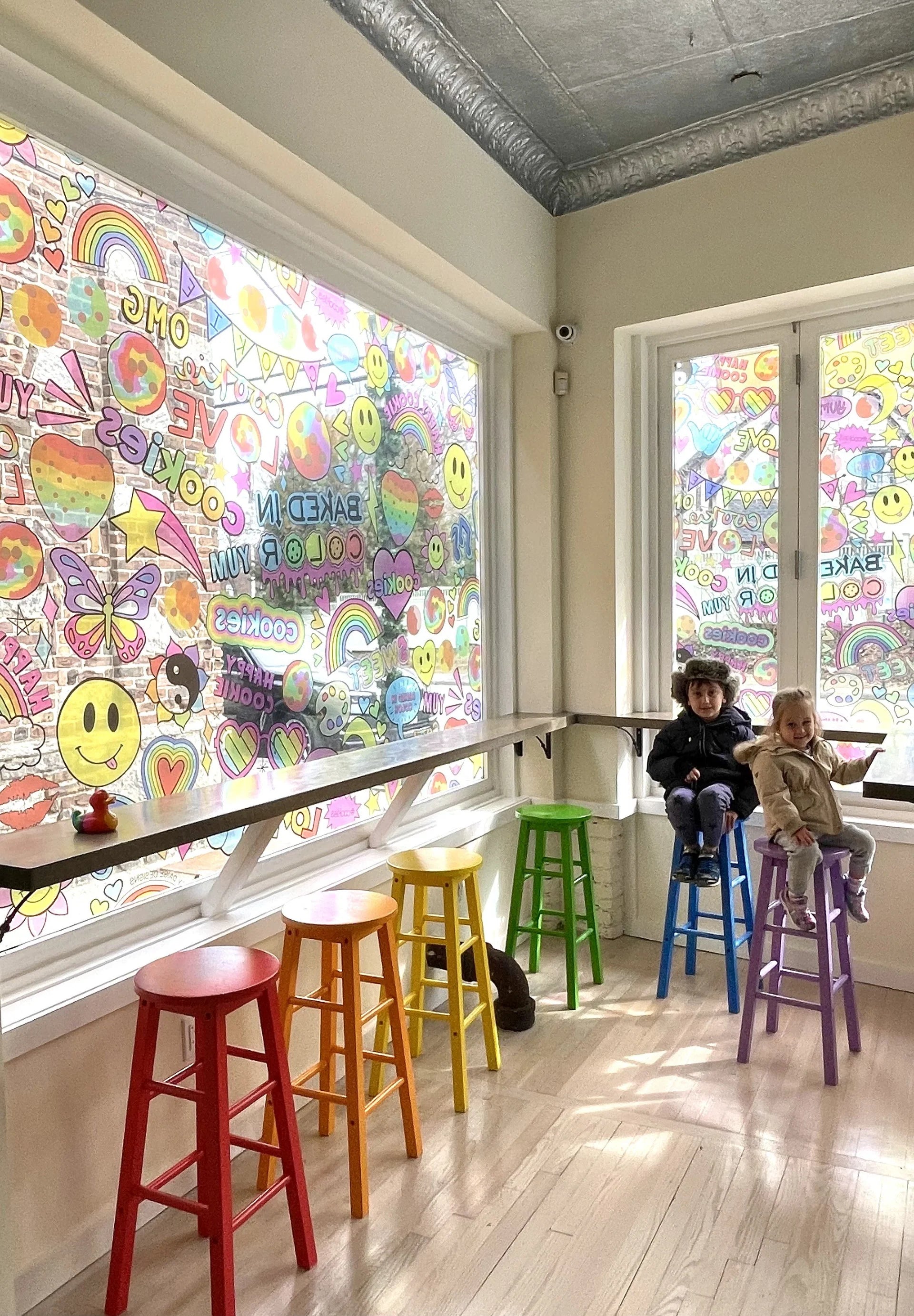 She also was able to help brighten up Baked In Colors retail location in Larchmont, NY by designing these awesome window decals.