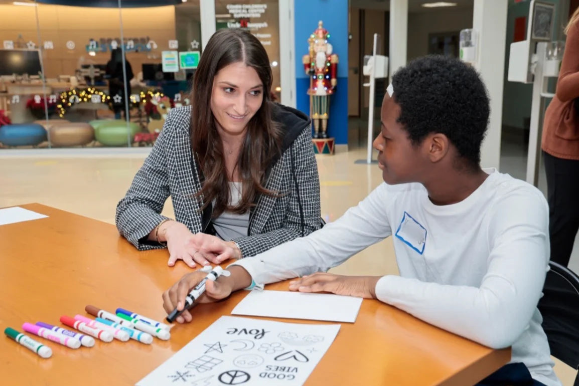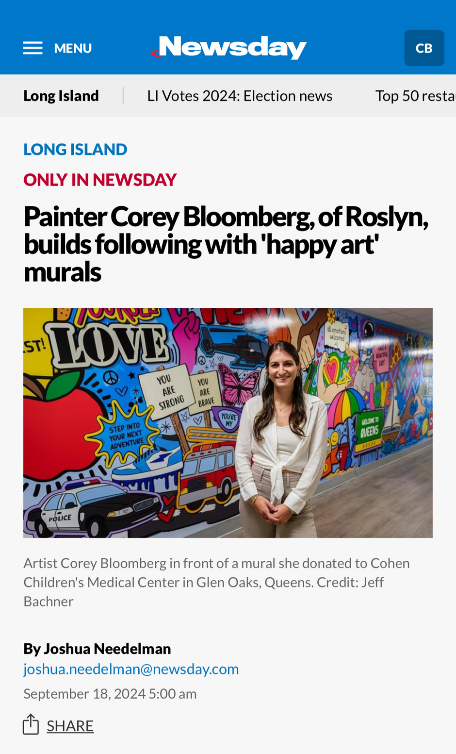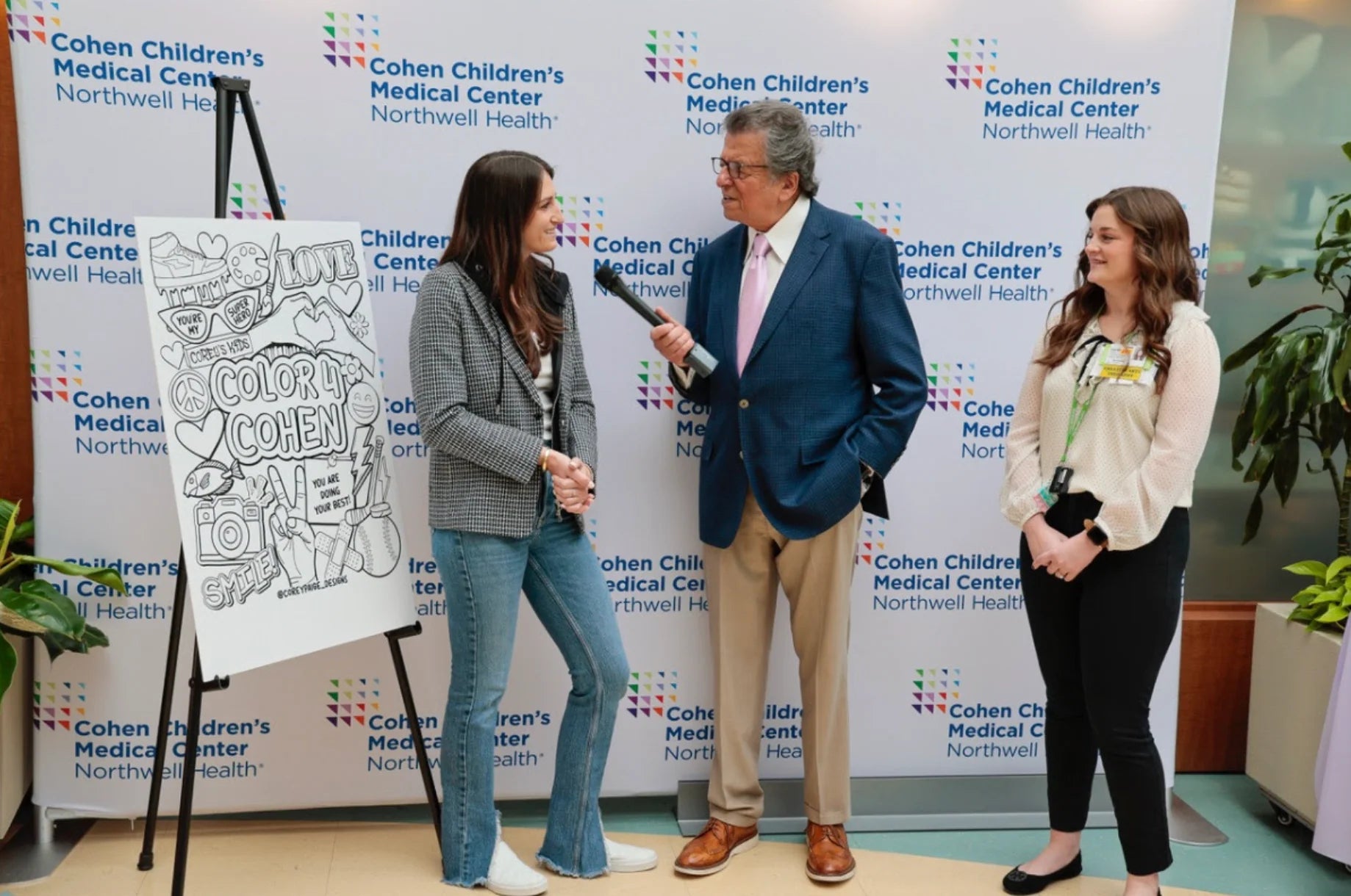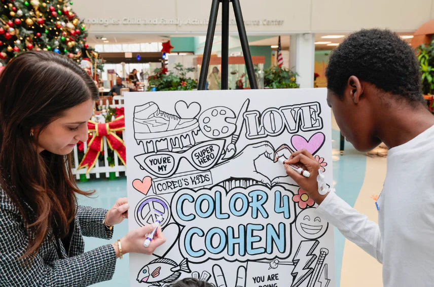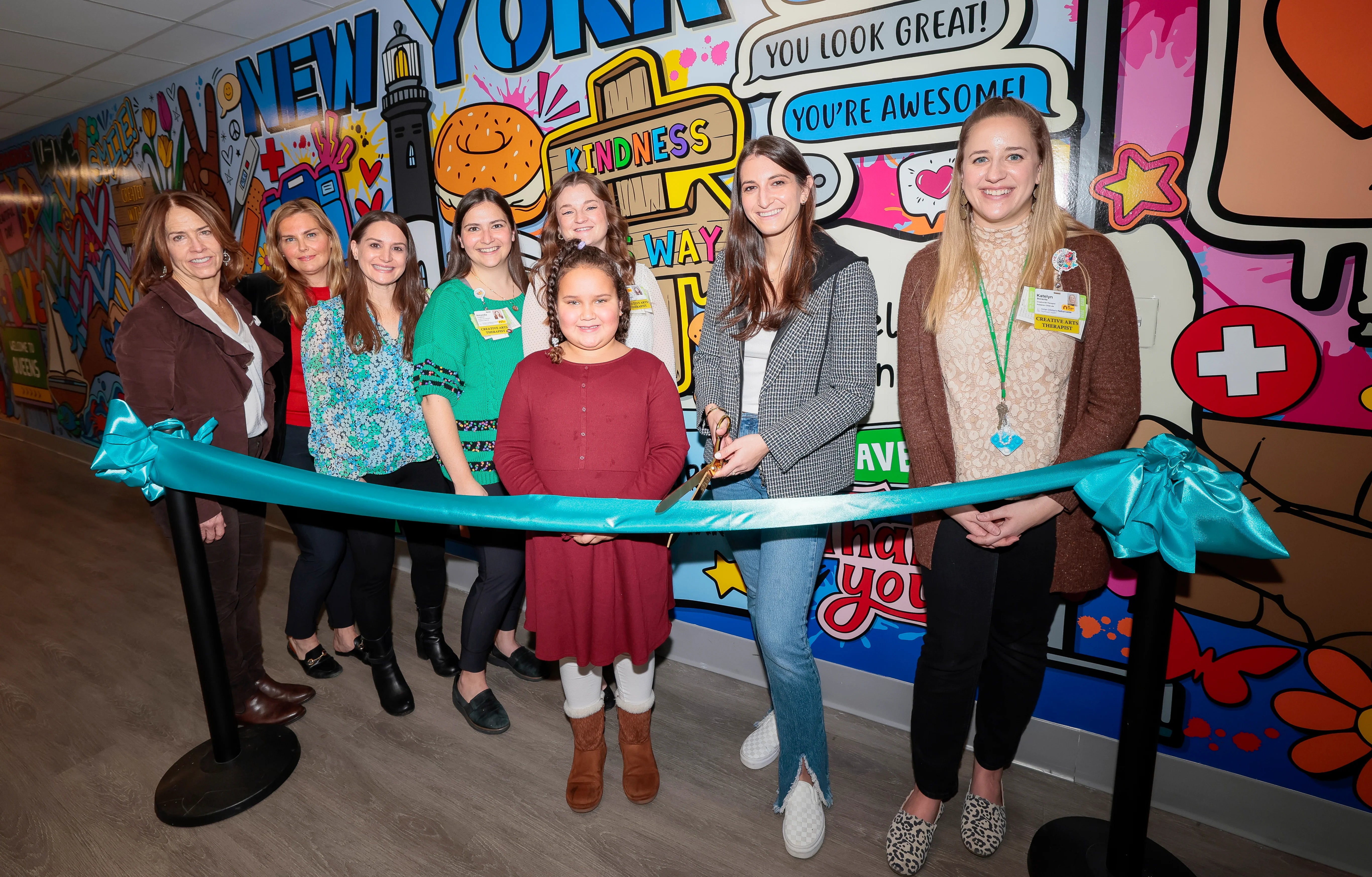 I am so honored and proud to donate my artwork and share my creative process with the incredible patients. In December 2023, I attended the unveiling of my 50ft mural at Cohen Children’s Medical Center. My mission as an artist is to make a positive impact, and I hope that this mural brings smiles to the faces of those who walk by. Also, feeling incredibly humbled to have my artwork hanging alongside the masterpieces of Keith Haring and Andy Warhol.