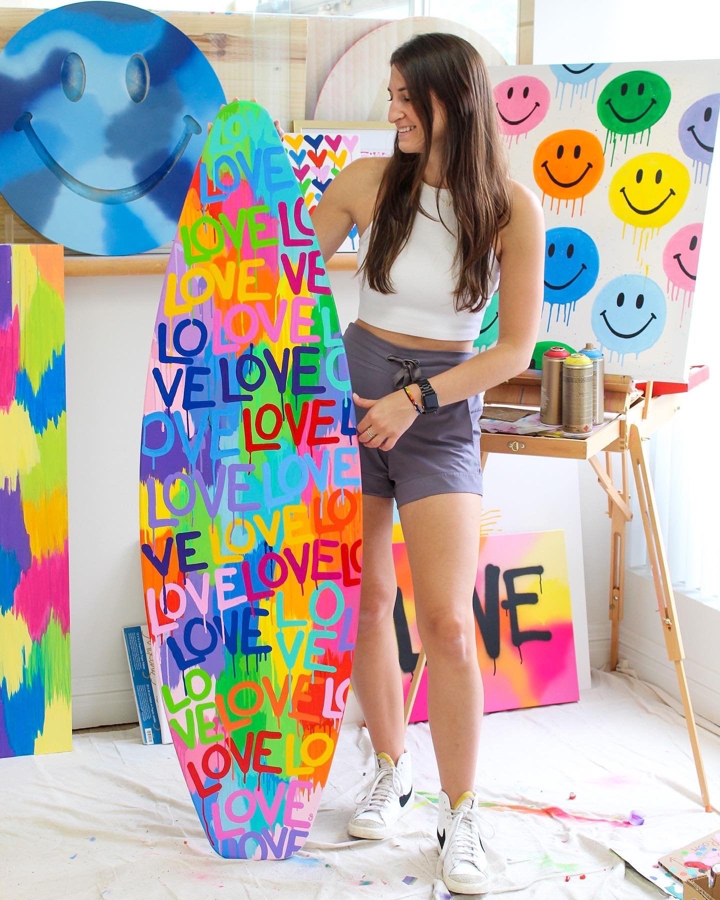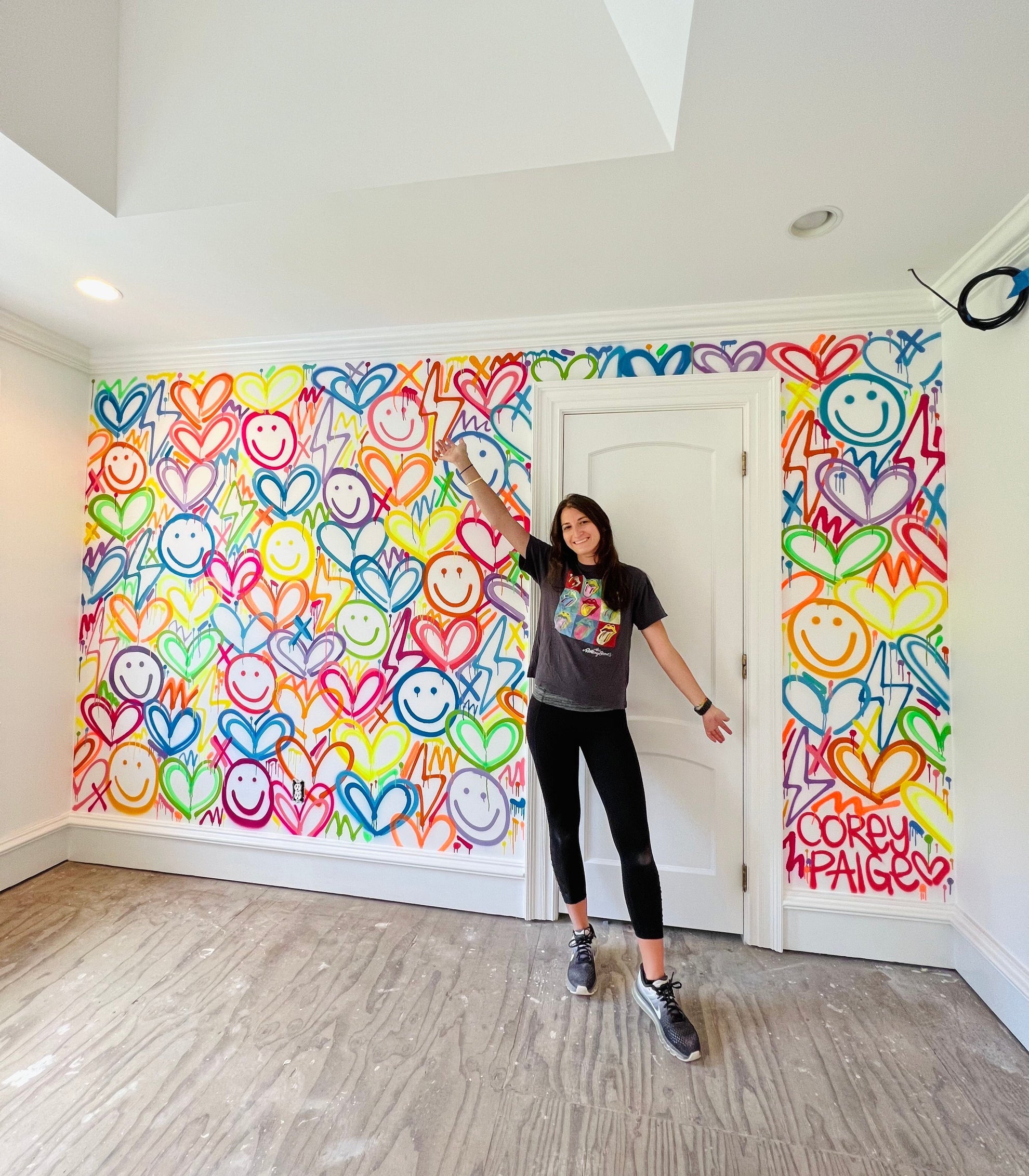 Corey Paige is a New York based artist, muralist, and entrepreneur specializing in making happy art. Known for her expressive style, Corey’s unique designs explore themes around love, positivity, and happiness. Corey is passionate about using her art to make the world a brighter place while making a positive impact. Her work is proven to give an immediate mood-booster, with the goal to put a smile on your face.