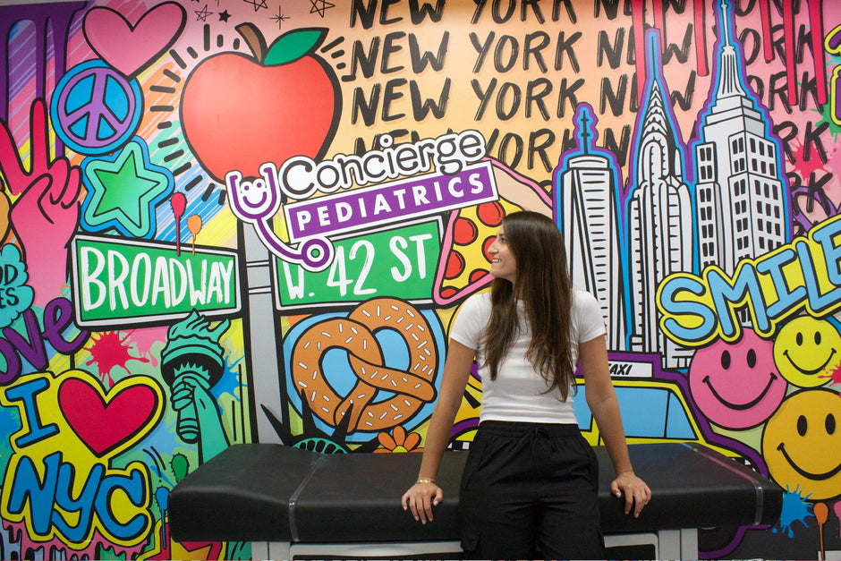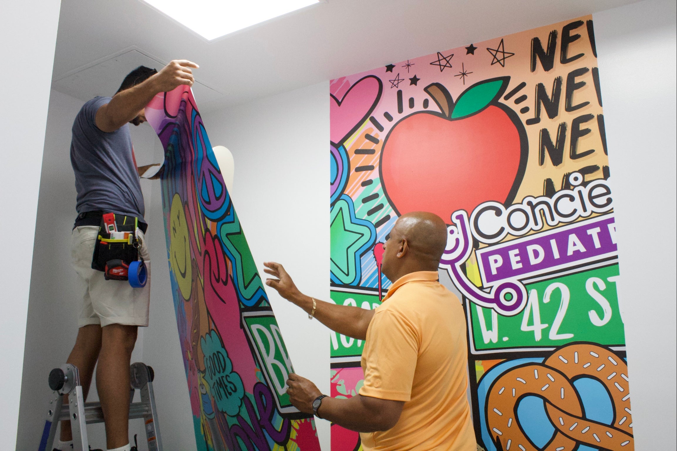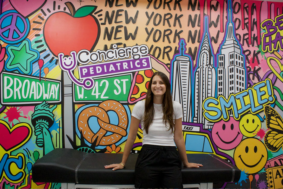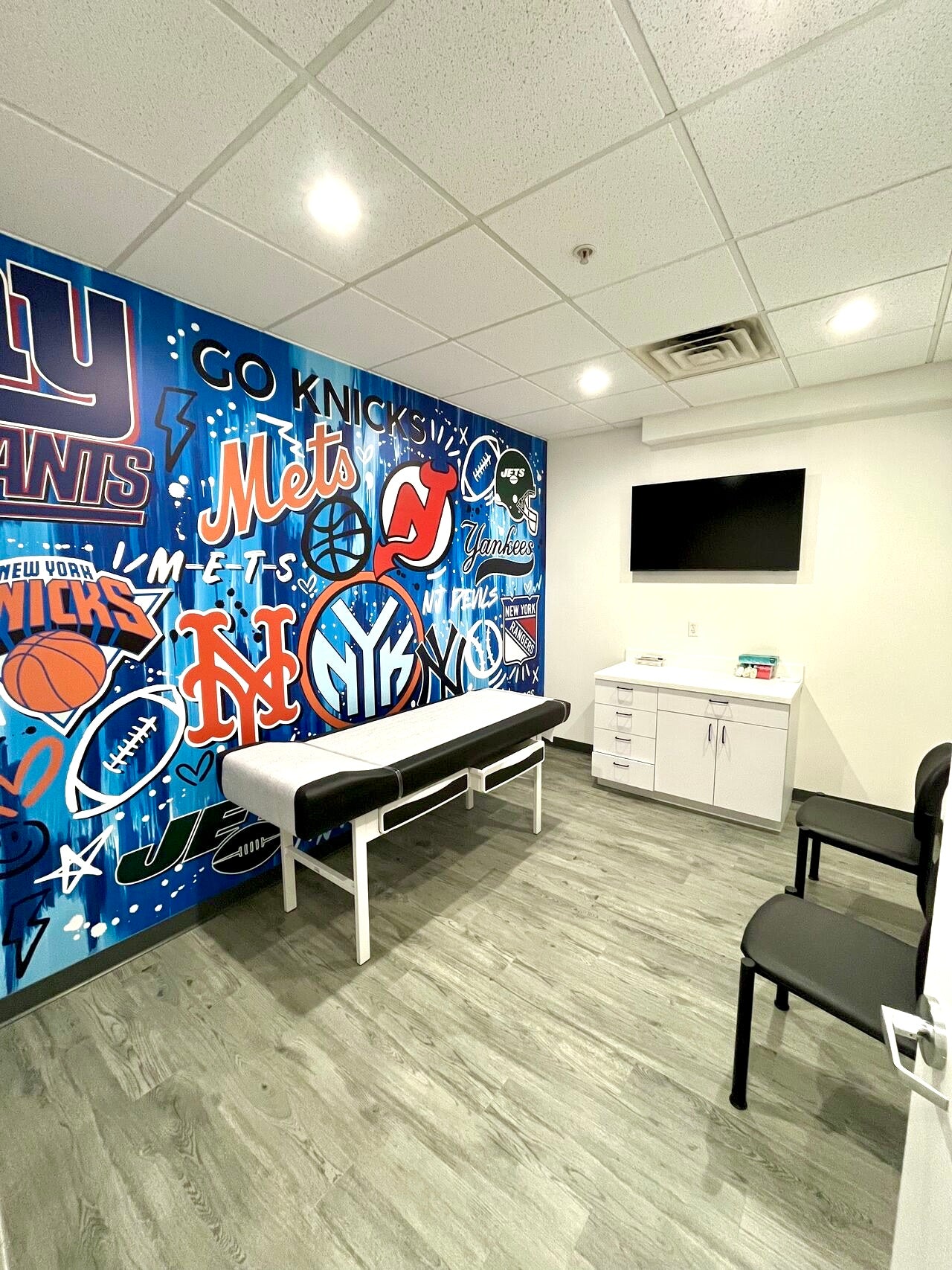 Corey was commissioned to create a series of vibrant vinyl wall murals for Concierge Pediatrics, transforming their exam rooms into colorful, welcoming spaces designed to comfort and inspire young patients. With her signature joyful style, she infused each room with energy & playful details that brighten every visit. Her artwork can now be found across all three Concierge Pediatrics locations — Roslyn, Woodbury, and Short Hills, NJ — bringing smiles to families throughout the community.