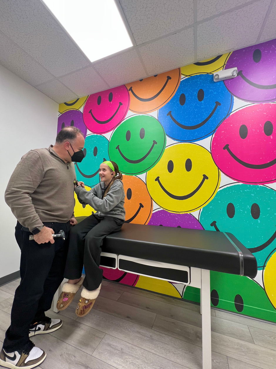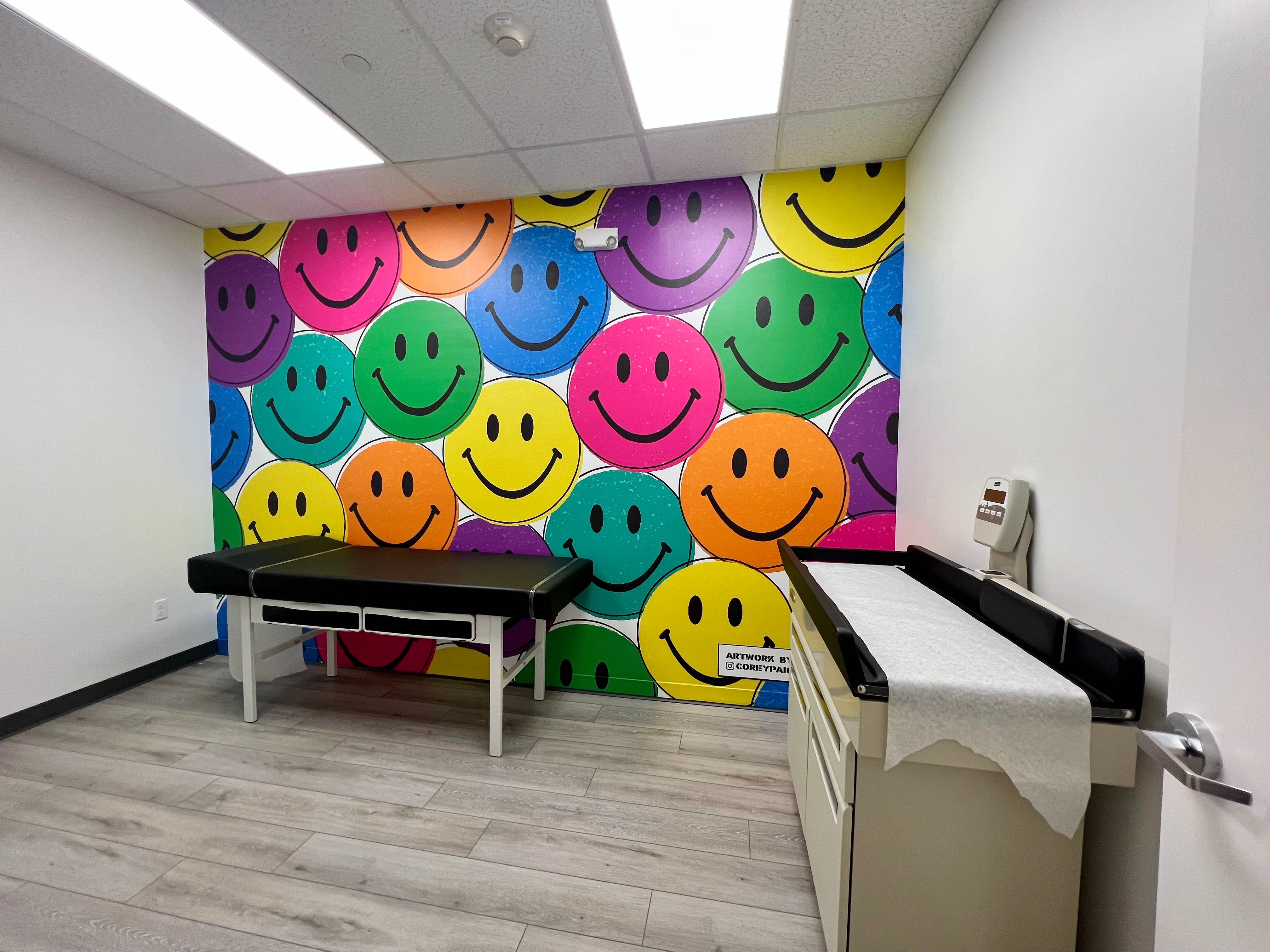 The walls are already putting smiles on patients faces! Here’s the text we got to prove it: “Yesterday a kid was hysterical crying and walked into the smiley room and immediately stopped and was like WOOWWW”