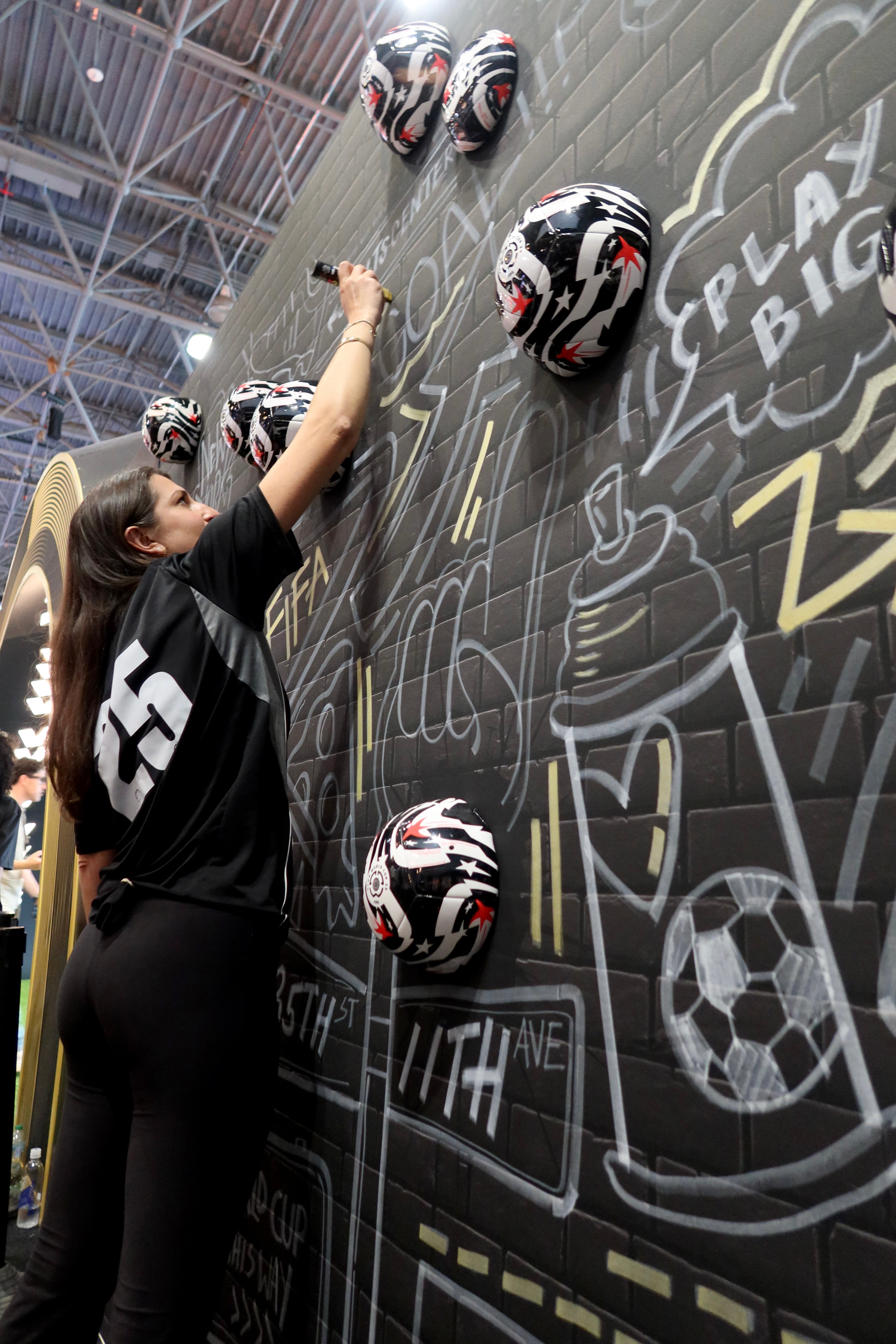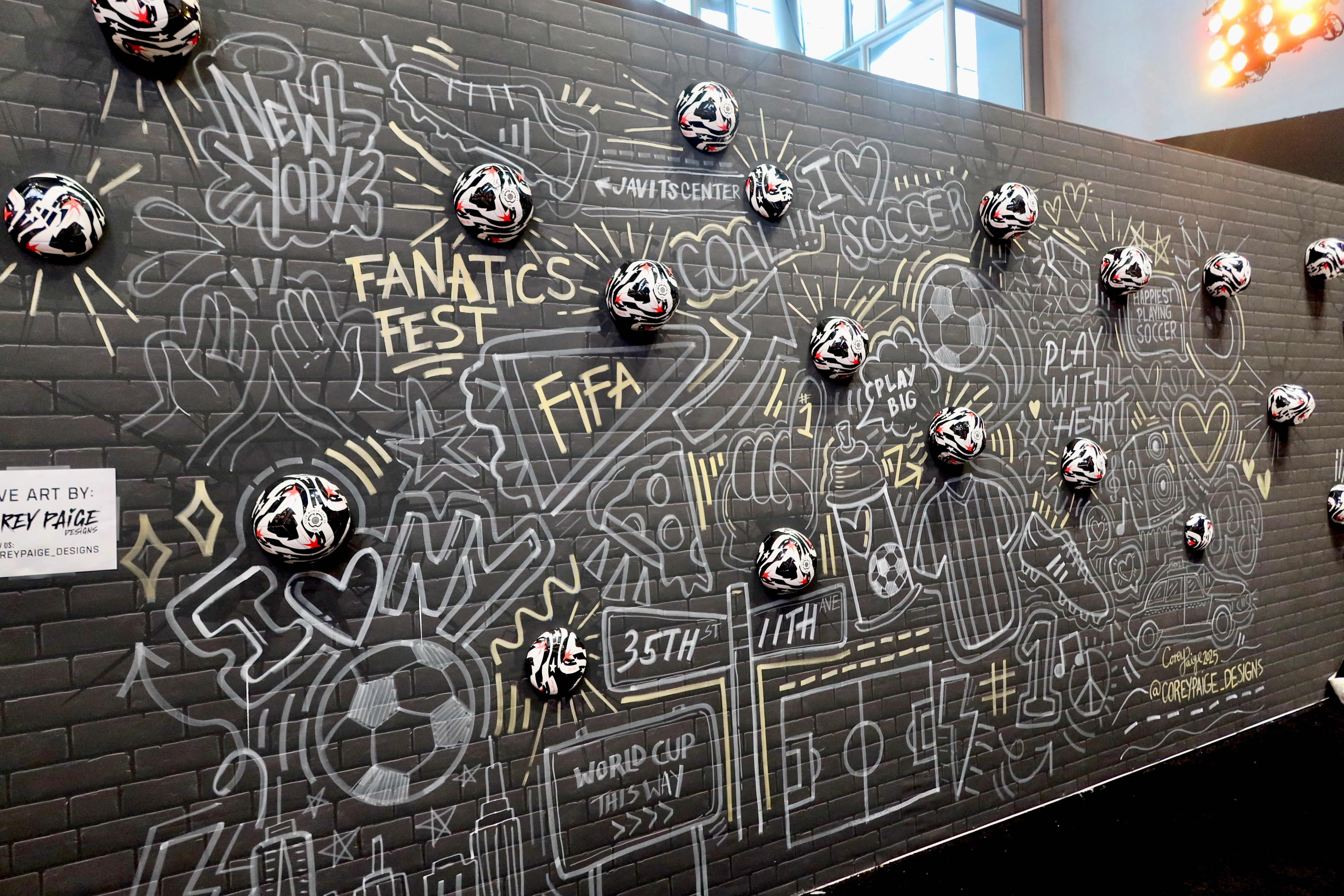 Corey was invited to draw live at Fanatics Fest in the FIFA booth, creating an NYC-meets-soccer inspired digital design on the spot. Using a Meta Quest headset to project and draw in real time, she brought the artwork to life before an audience, blending cutting-edge technology with her signature vibrant style.