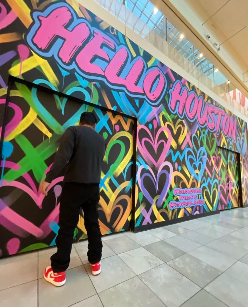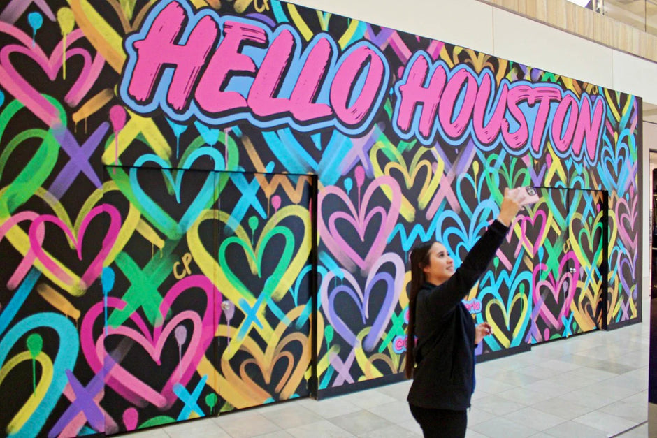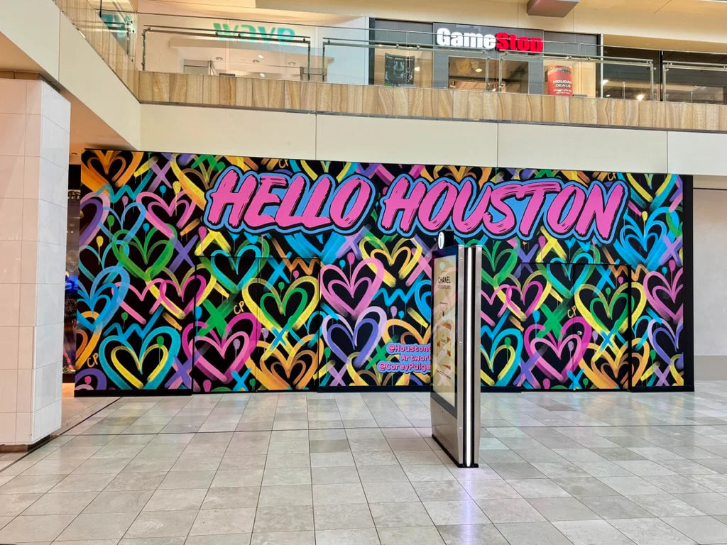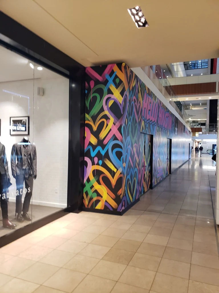 Bringing a burst of color to the heart of Houston, we teamed up with Houston Galleria, a Simon Mall establishment, to add a pop of color to their shopping experience just in time for last holiday season. Corey created this rainbow heart design digitally, which was an enlarged, printed and installed as a vinyl decal onto the storefront at the mall. This artwork has proven to be a perfect photo backdrop already being tagged several times on Instagram.