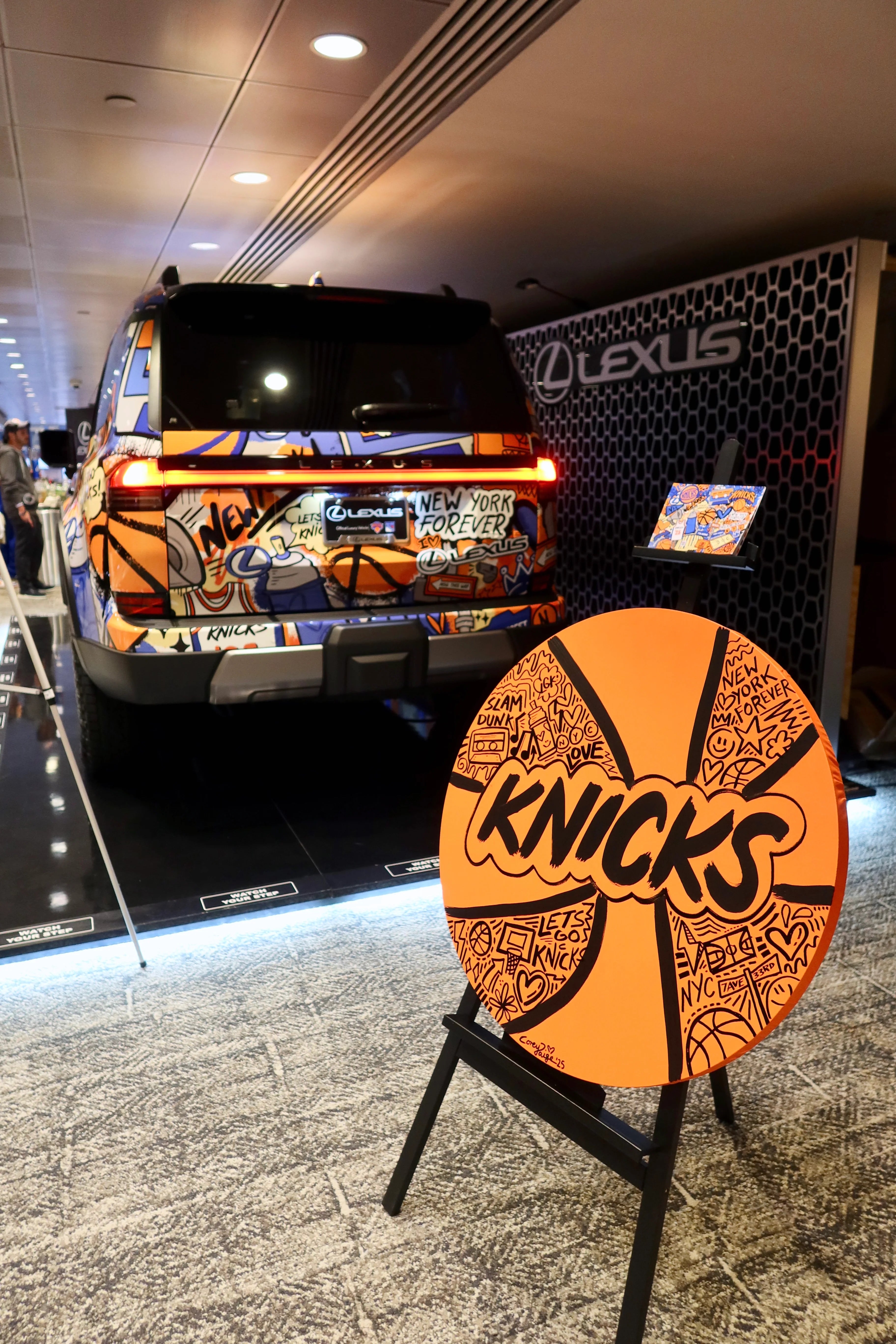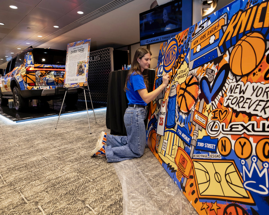 In addition to the car wrap, Corey was invited to do live painting activations at MSG, design custom rally towels for the Lexus Suite Level, and create exclusive giveaway items like keychains and postcards for fans.