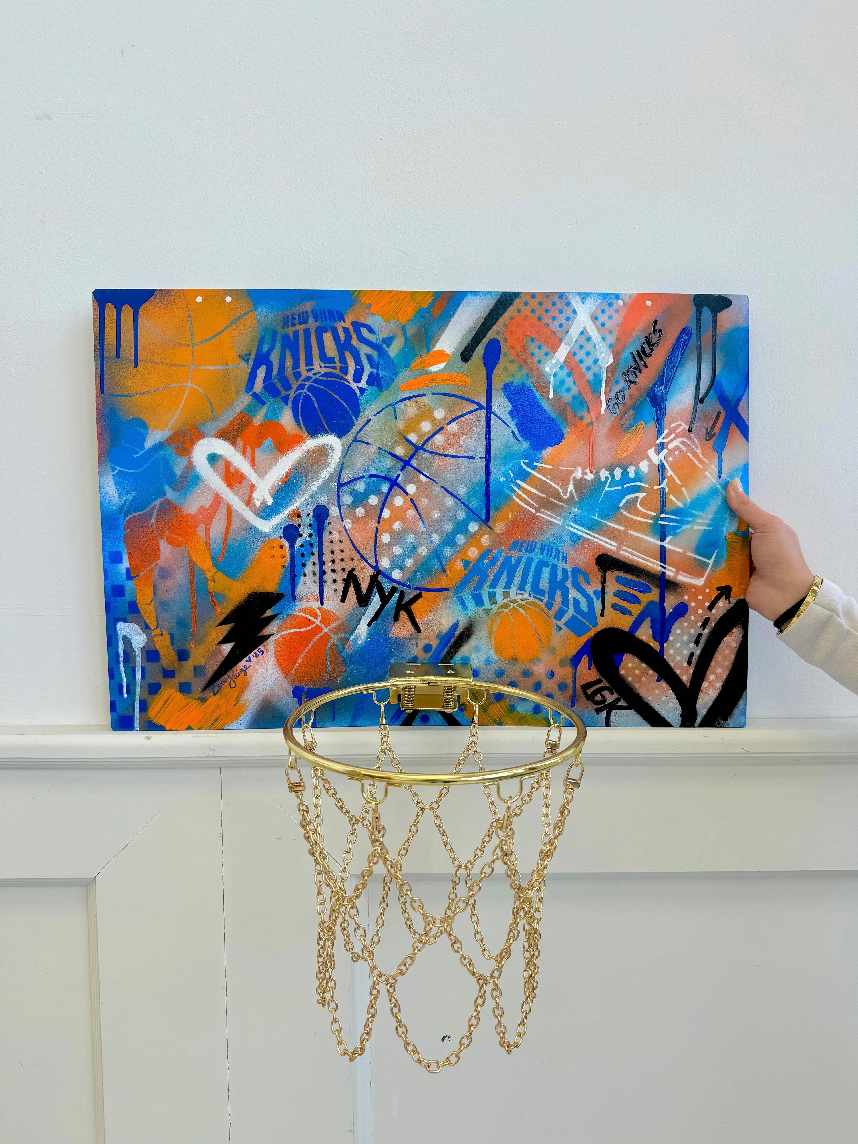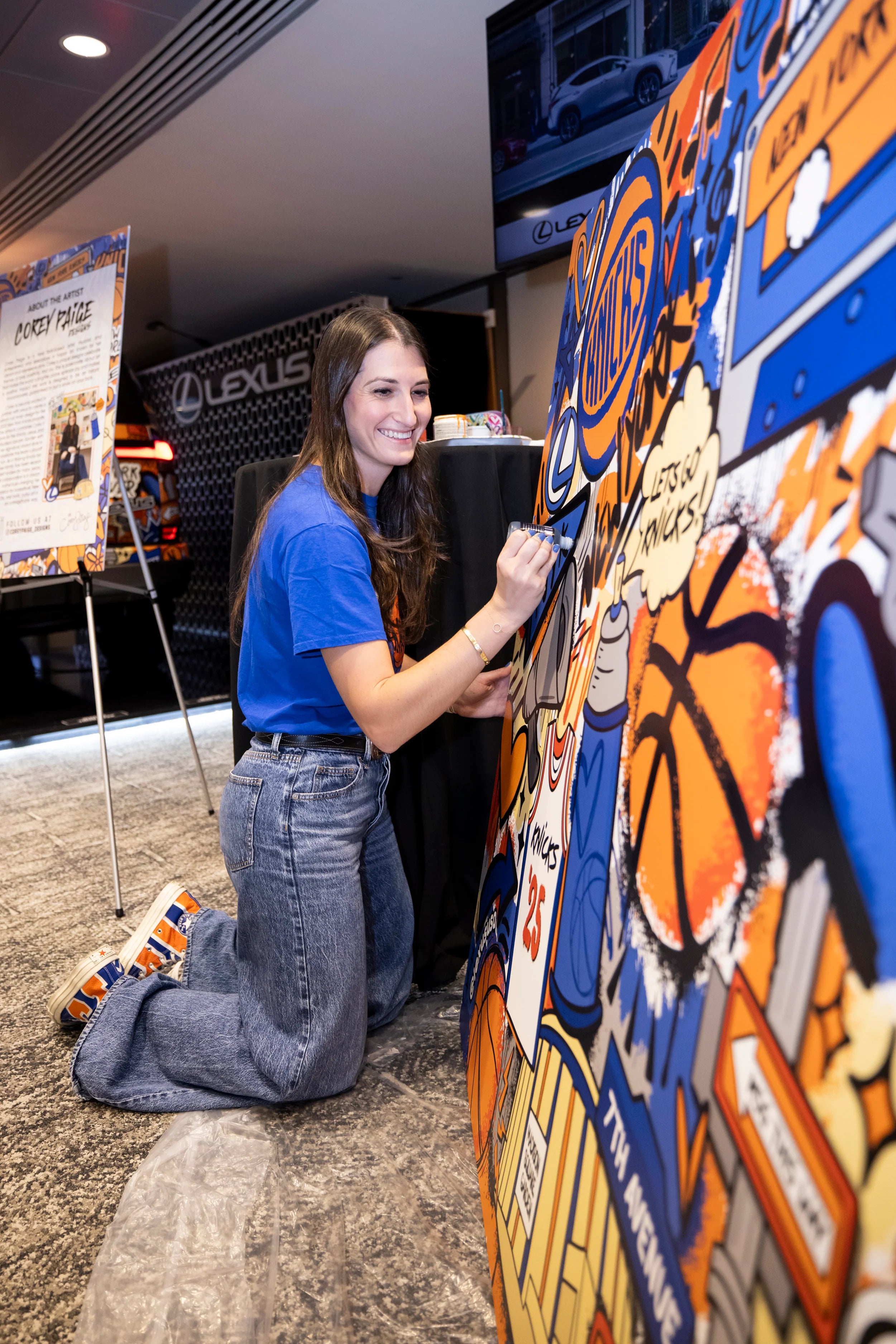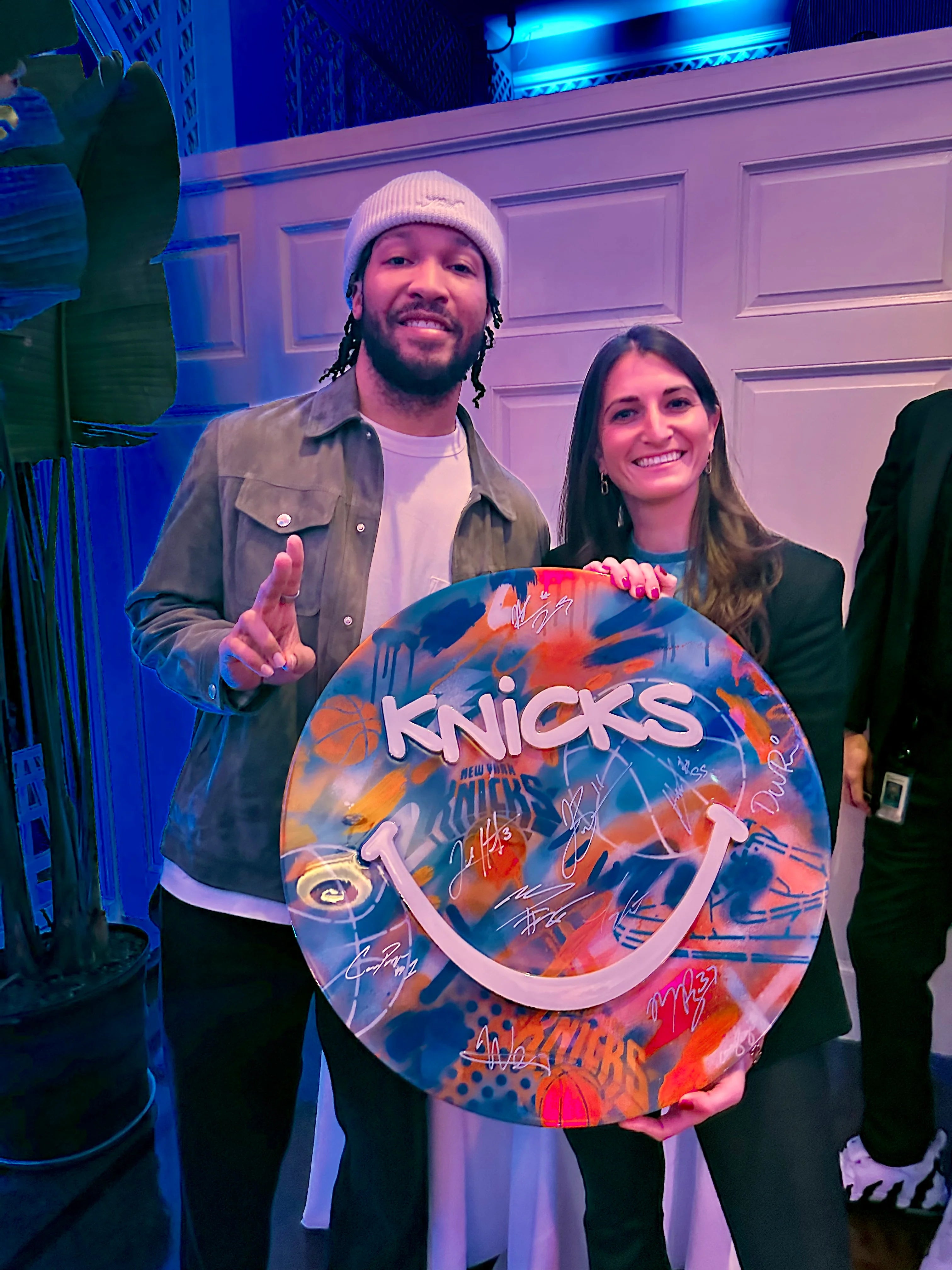 She also collaborated with the Knicks for their annual Kicks & Cocktails event, where her original artwork, signed by the entire team, raised nearly $9,000 for the Garden of Dreams Foundation.