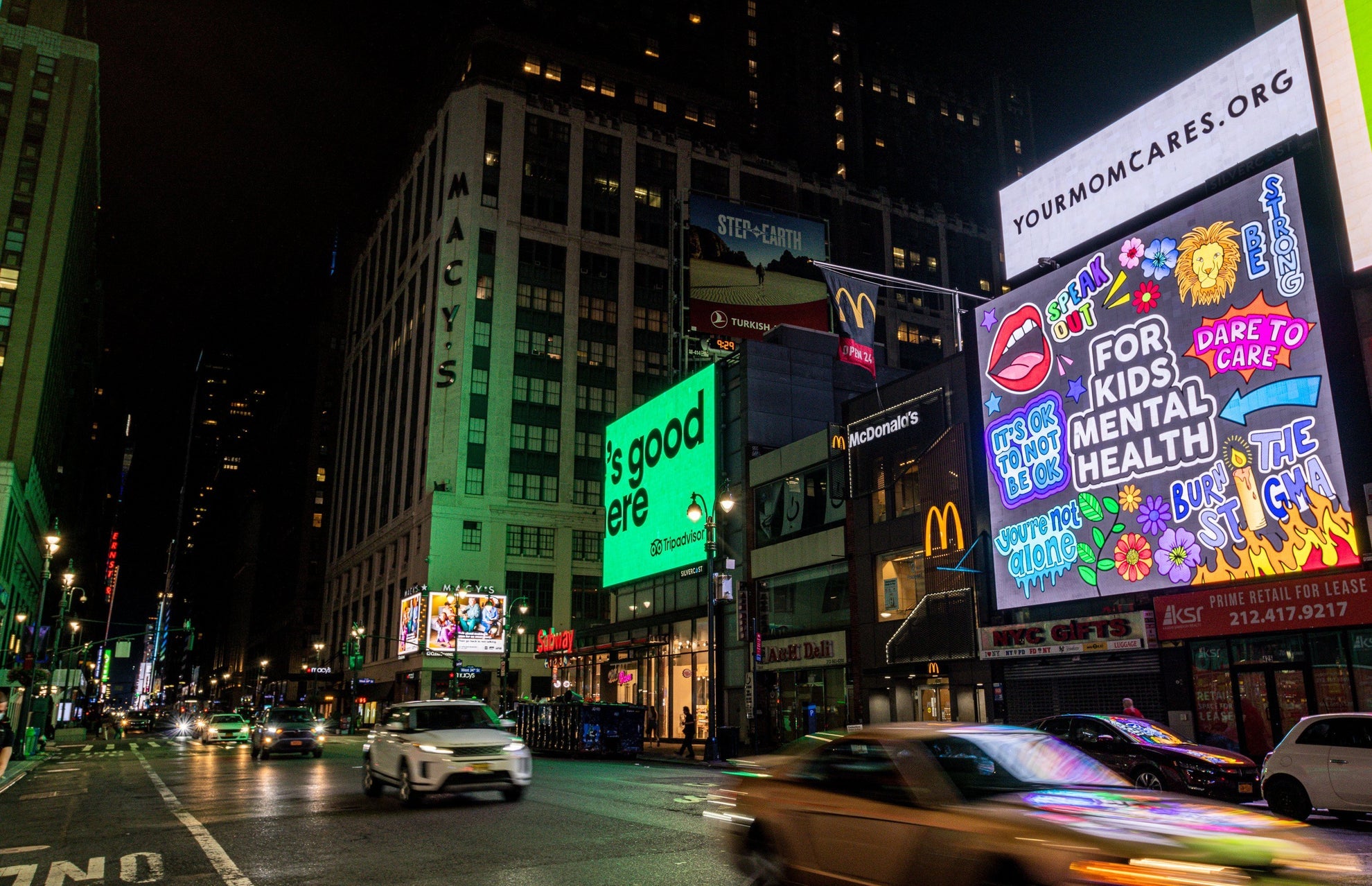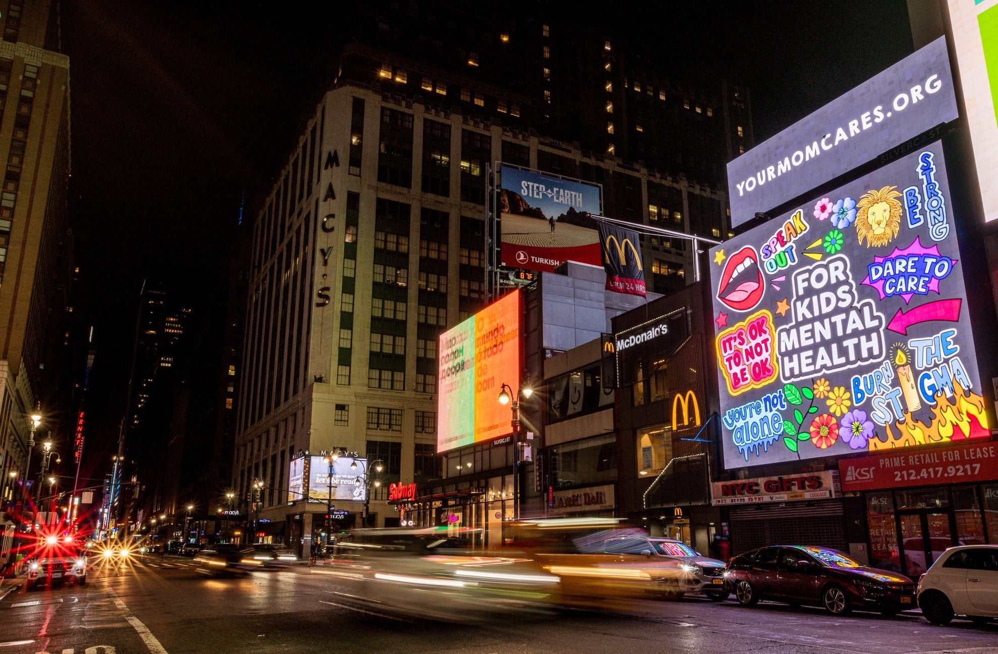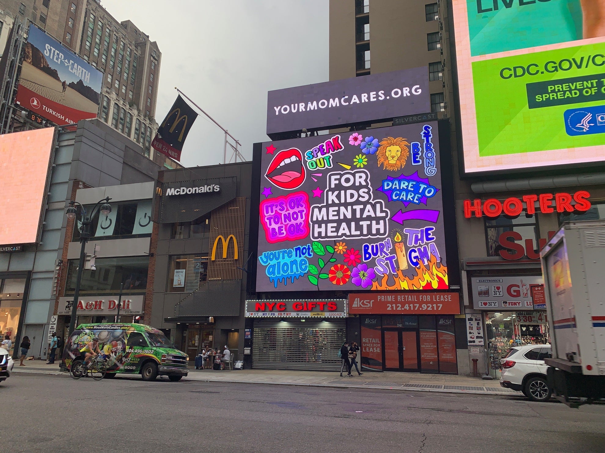 The billboard was located at 33rd St. and 7th Ave in Penn Plaza, New York City. Tag @coreypaige_designs & @yourmomcares
