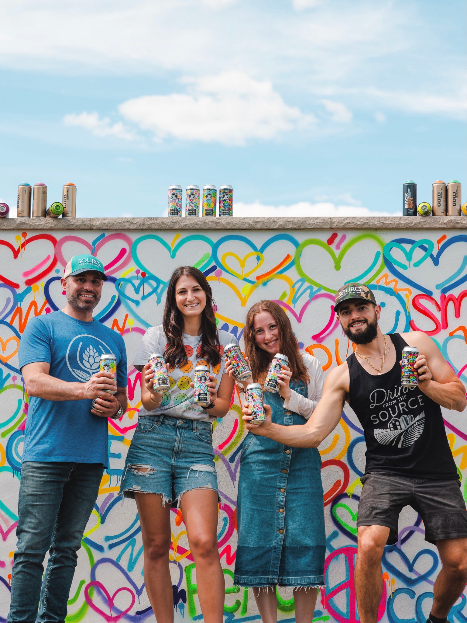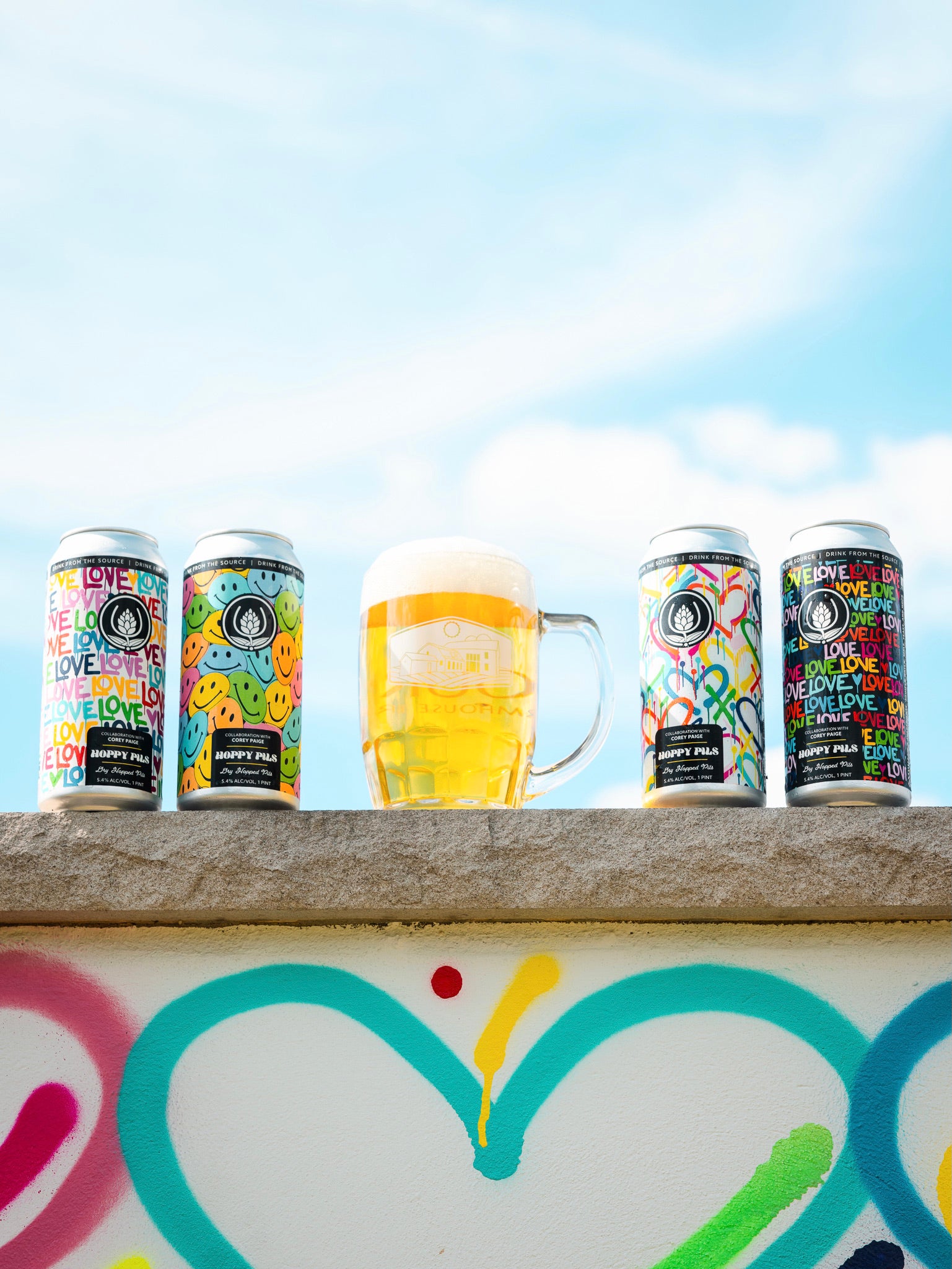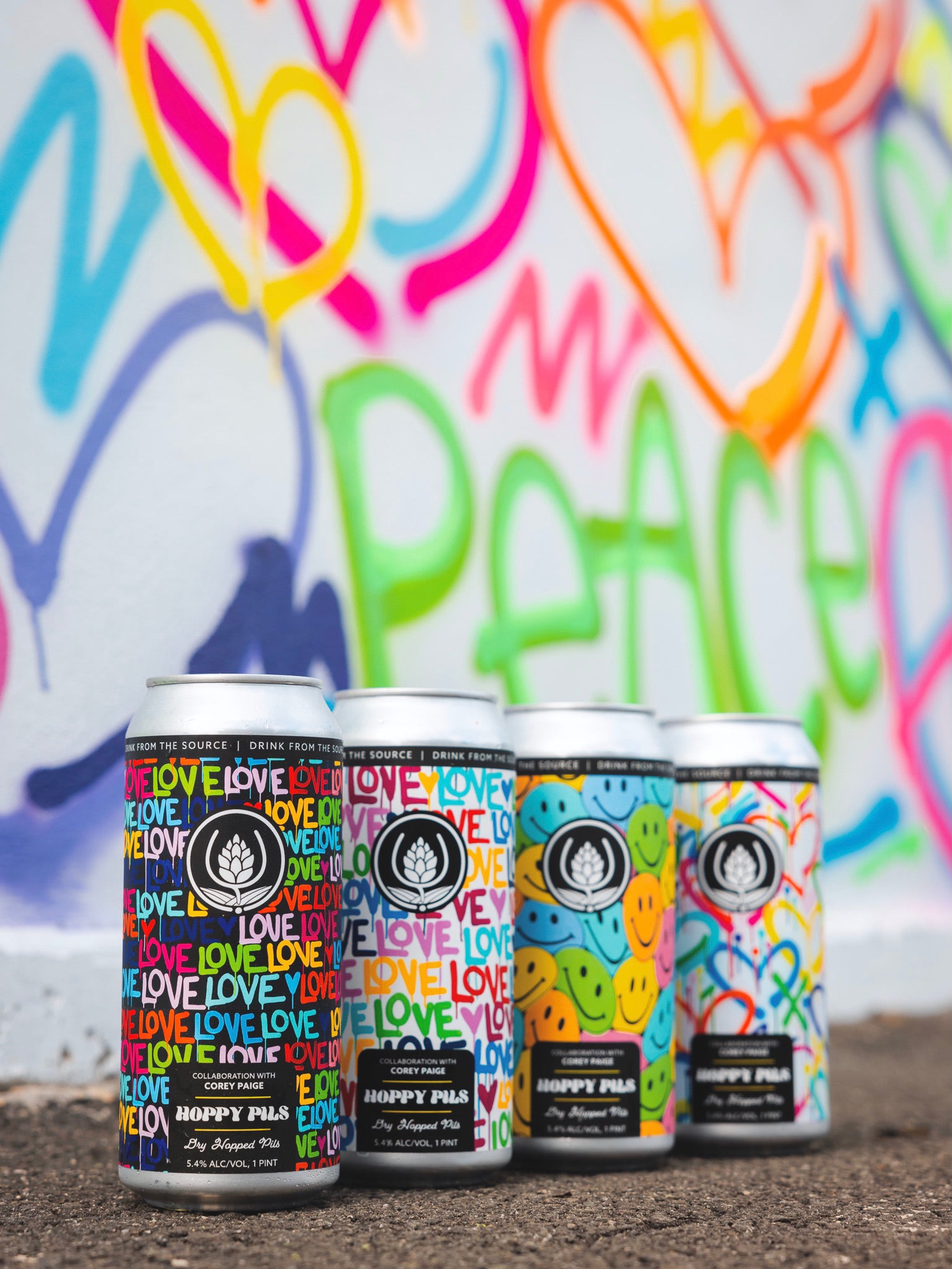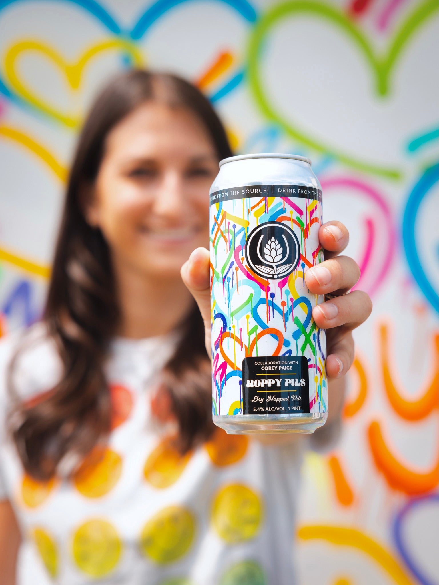 Corey Paige Designs teamed up with Source Brewery to create limited-edition beer can designs. This collaboration brought together Corey’s feel-good artwork with Source Brewery’s craft culture, transforming plain cans into colorful art pieces. Corey even went behind the scenes during production to watch the designs come to life on the cans.