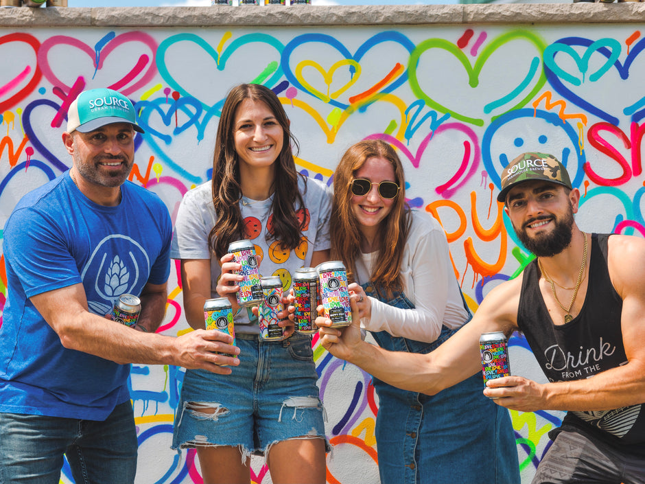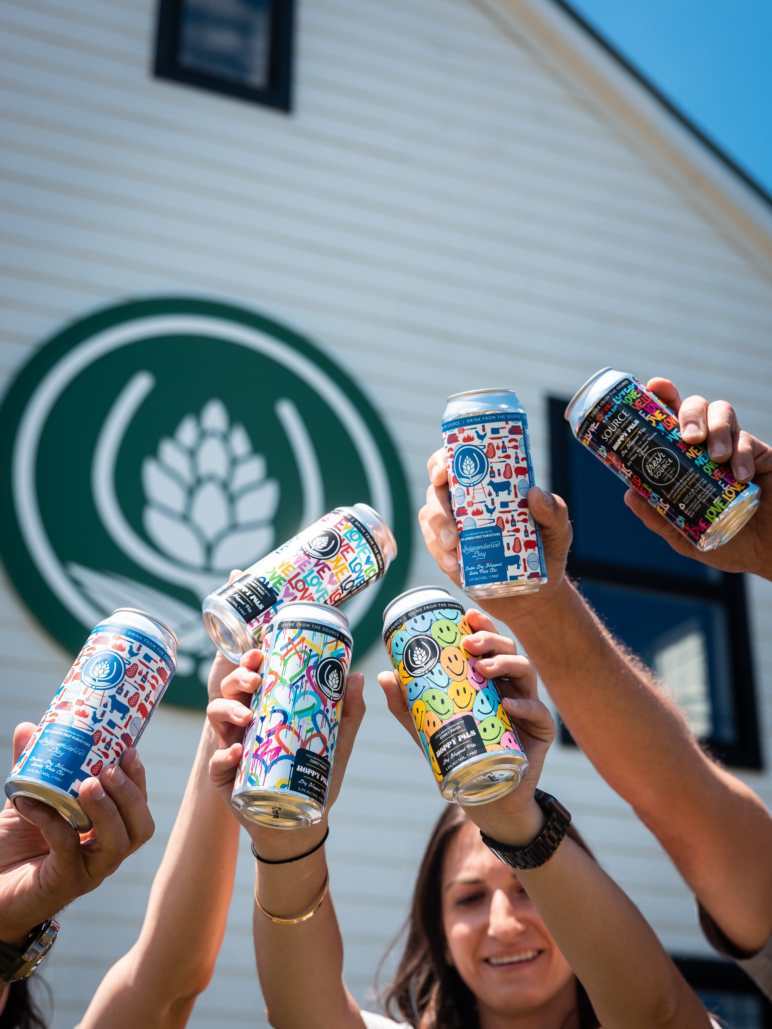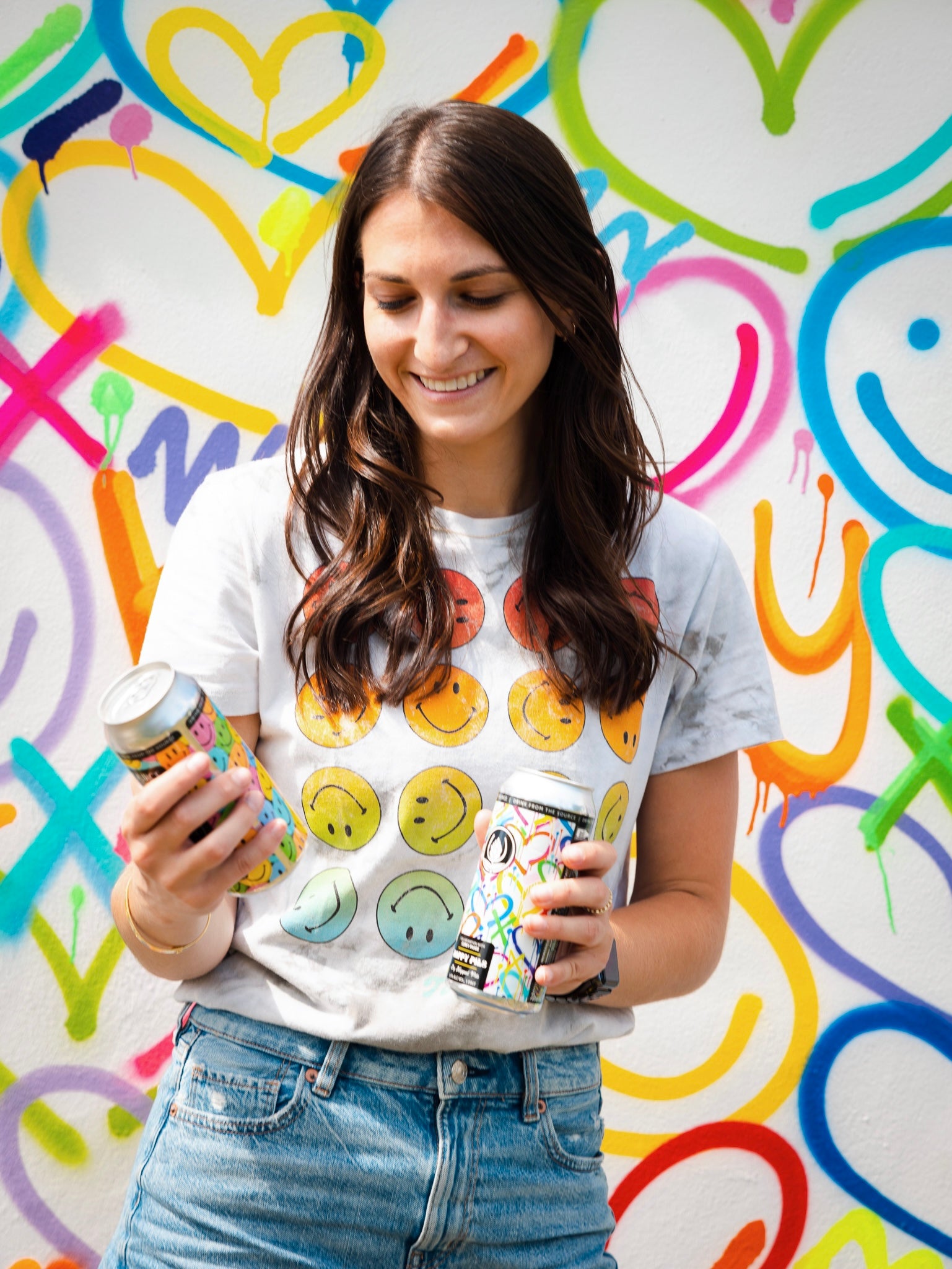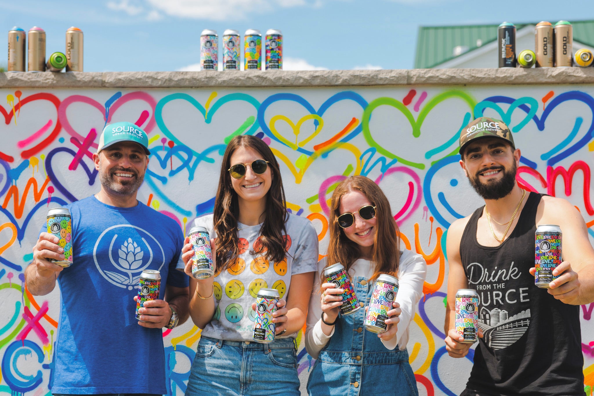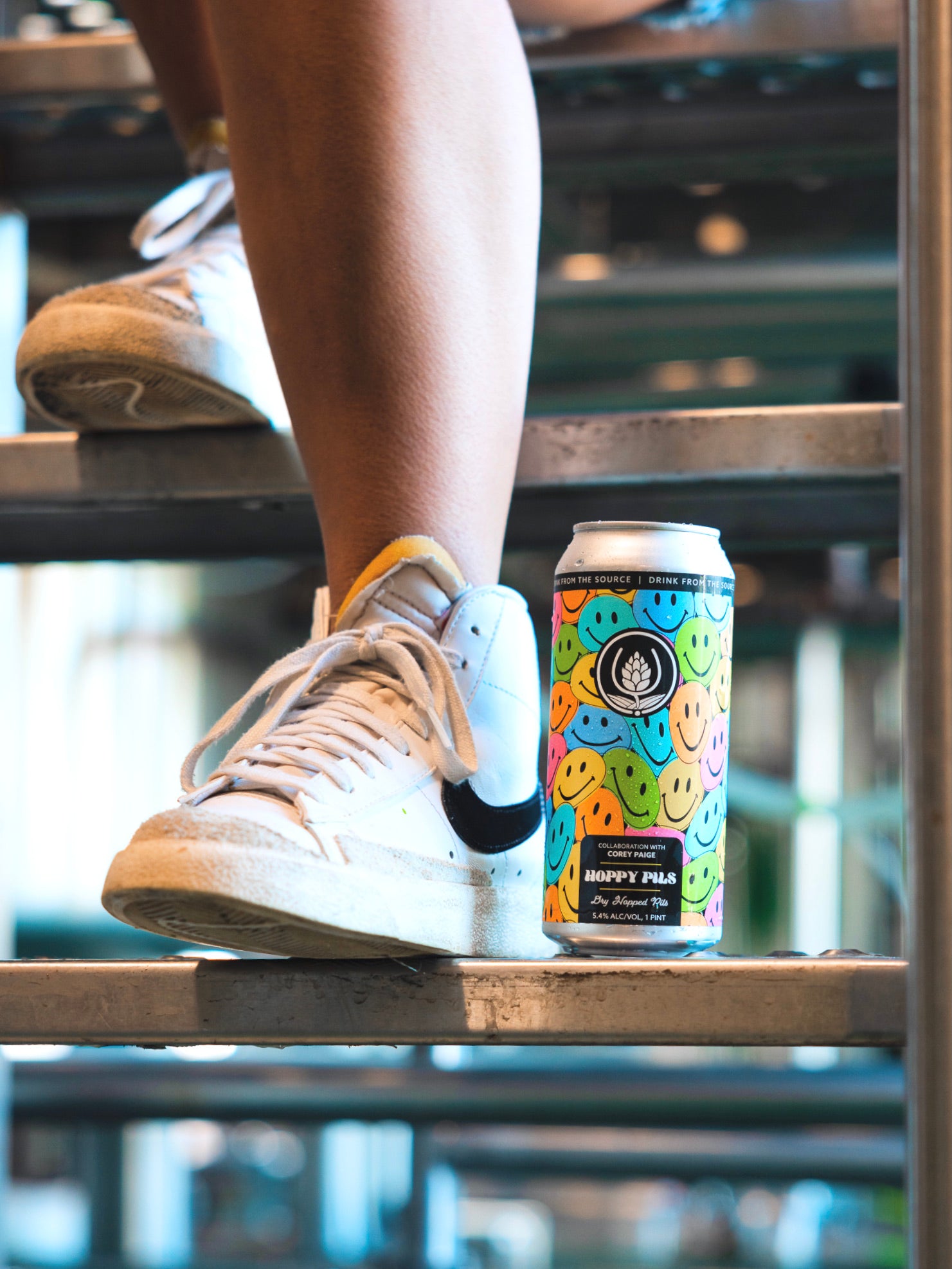 Corey Paige Designs teamed up with Source Brewery to create limited-edition beer can designs. This collaboration brought together Corey’s feel-good artwork with Source Brewery’s craft culture, transforming plain cans into colorful art pieces. Corey even went behind the scenes during production to watch the designs come to life on the cans.